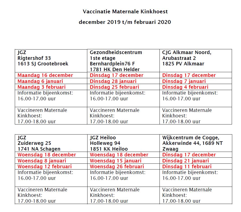 Kinkhoest vaccinatie Geen categorie Kinkhoest vaccinatie Vanaf 16 december 2019 kunnen zwangere vrouwen die op dat moment 22 weken of langer…Verloskundig Centrum Noord Holland Noord20 december 2019